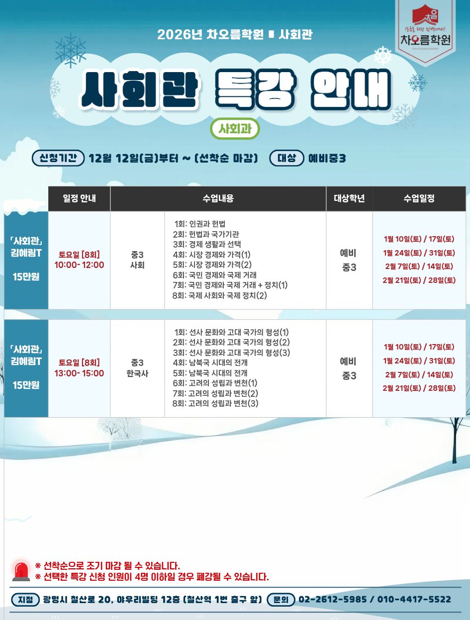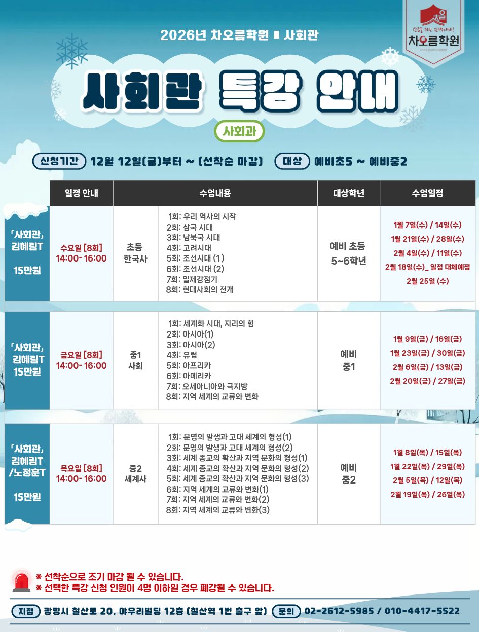 <25년도 겨울방학 특강 - 사회과>